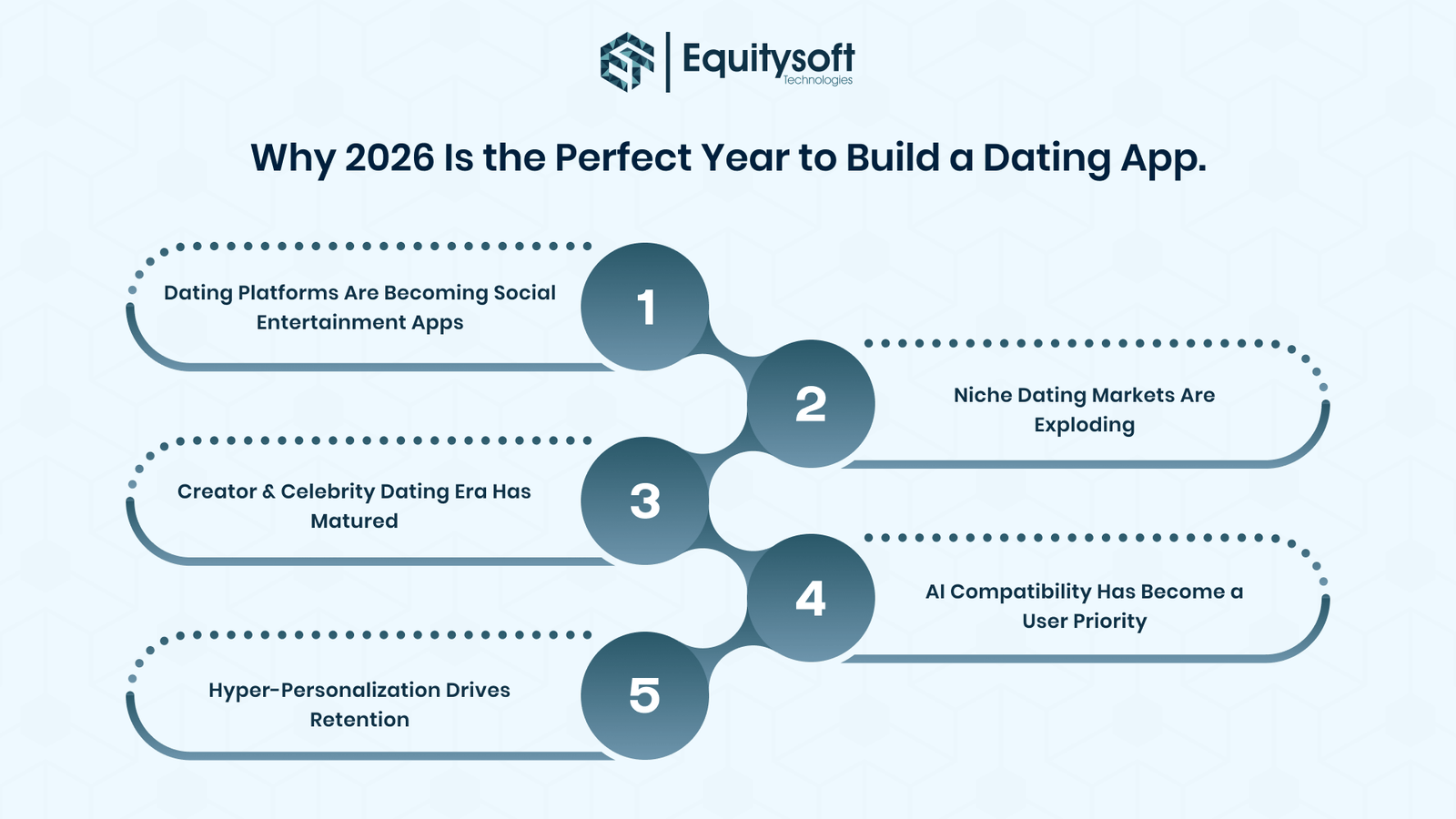 At Equitysoft Technologies, we build smart, scalable, and secure dating apps powered by AI-driven matchmaking, advanced verification systems, and rich user experience design.